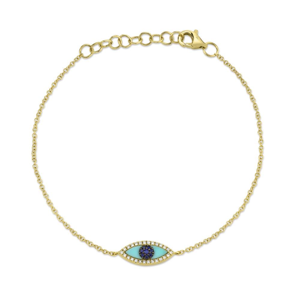 0.06CT DIAMOND & 0.20CT BLUE SAPPHIRE & COMPOSITE TURQUOISE 14K Y/G EYE BRACELET
