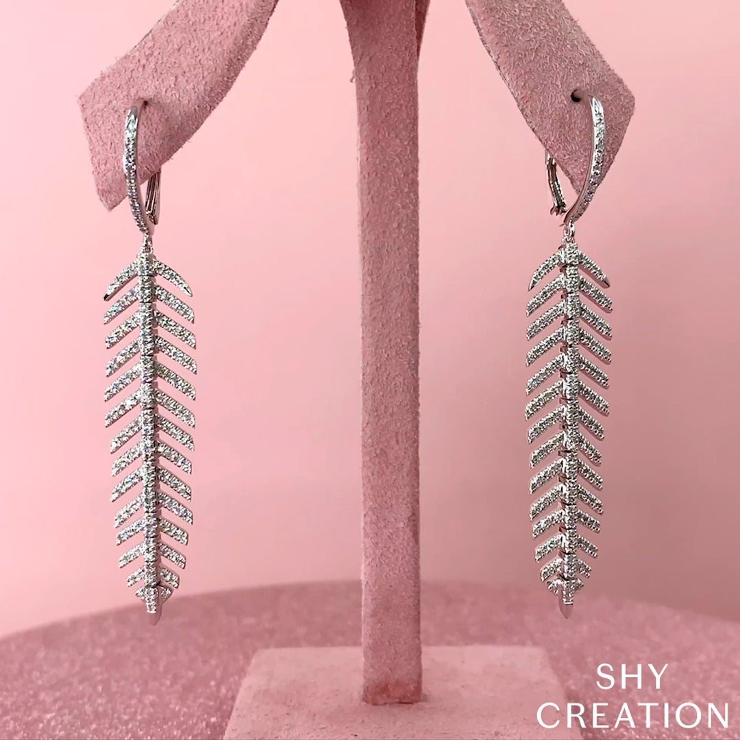 The ultra unique 'Phoenix' drop dangle feather earrings highlight Shy Creation's commitment to impeccable design and craftsmanship. Delicately hinged, the 'Phoenix' motif curves and caresses like silk - a must-have for every jewelry collection.