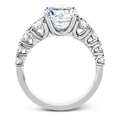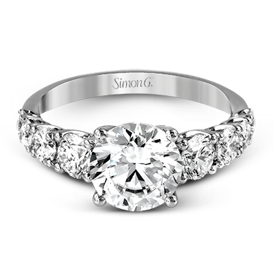 This white gold engagement ring's sophisticated, contemporary design glitters with 1.14 ctw of round white diamonds flanking the center stone.