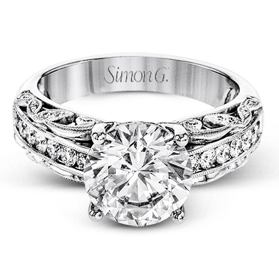 Nature-Inspired 18k White Gold Leaf Filigree Engagement Ring with .43 ctw Diamonds