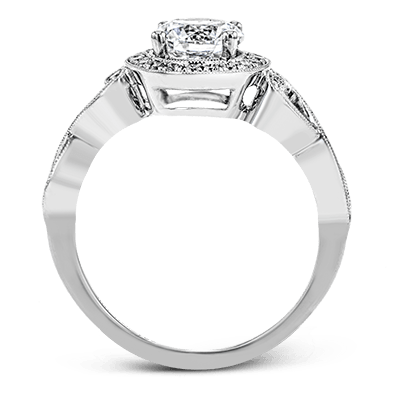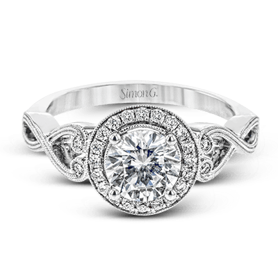 White Gold Halo Diamond Engagement Ring with Milgrain Detail - TR686