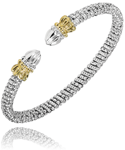 Sterling silver and a touch of 14K yellow gold make this an easy open style cuff bracelet to wear.