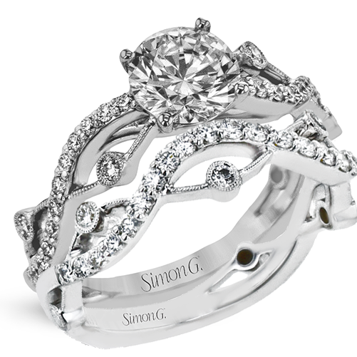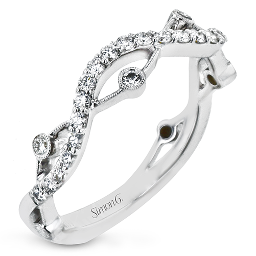 Elegant wedding band with intricate diamond design totaling .25 ctw.